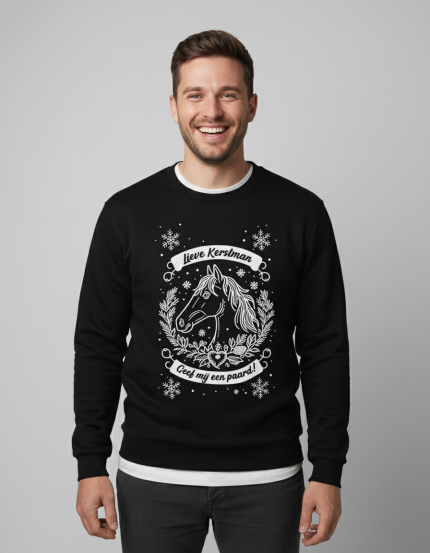 Bestel vandaag nog de Lieve Kerstman, Geef mij een Paard! kersttrui en maak jouw kerst dit jaar extra speciaal – wie weet welke verrassingen er onder of naast de kerstboom op je staan te wachten!